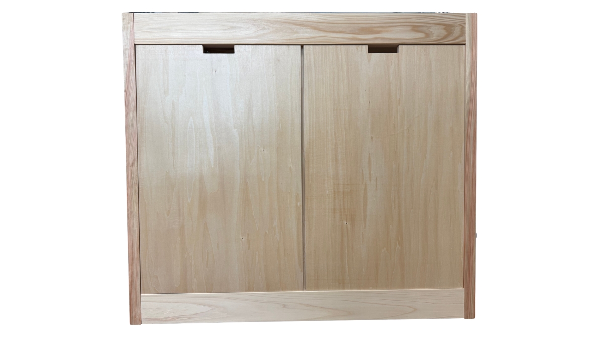 シンプルな構造ながら、水槽の重量をしっかり支える木製フレーム構造と、美しく仕上げられた木製パネルによる外装仕様。